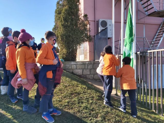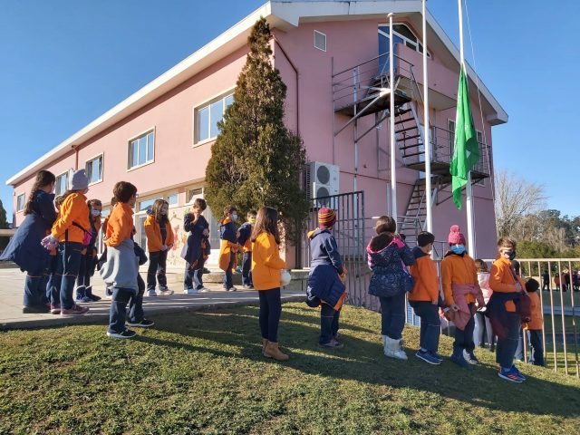 Este ano atípico, coube aos alunos do 4°A, no seguimento do prémio recebido pelo Projeto da UHU, representarem toda a Comunidade Escolar e hastear a Bandeira Verde do Eco-Escolas.