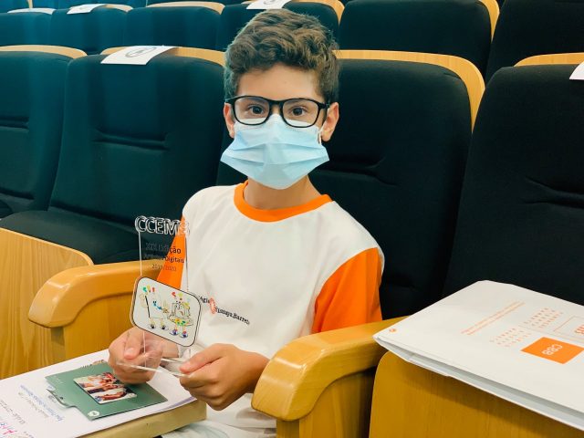 Ontem, dia 29 de setembro, decorreu, no Auditório da Fundação Bissaya Barreto, pelas 15h00, a cerimónia presencial de entrega de prémios do concurso “Artistas Digitais” (http://artistas.ccems.pt), cujo tema da XIX edição, no ano letivo 2019/2020, foi “Água Potável ou Energias Renováveis”, para os alunos do 1º CEB. Estiveram presentes o Coordenador do CCEMS e Diretor do CFRCA, Dr. António Carvalho Rodrigues, e a Coordenadora do concurso, Dr.ª Nancy Silva, para agraciar o aluno Salvador Moreira, distinguido com o 2º lugar, a aluna Dalila Alvoeiro, distinguida com uma menção honrosa, e Karolina Lokovey, também distinguida com uma menção honrosa. A cerimónia contou ainda com a presença das encarregadas de educação e dos professores titulares à data do concurso, Vera Ferraz, Marisa Paiva e Ricardo Pinto, bem como do Coordenador de TIC do Colégio, Eng. Paulo Gabriel Soares, também distinguidos(as) pela sua colaboração.