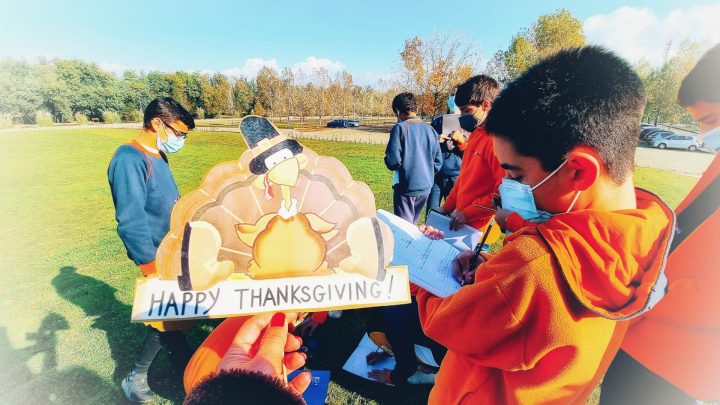 Através de uma pequena articulação entre as disciplinas de Inglês e Geografia, os alunos realizaram diferentes atividades, de onde se destaca o trabalho de campo de orientação (Geografia) e o momento My TOP 10 Thankful List (Inglês).