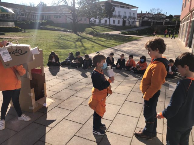 “O mundo das notícias” é a expressão mais elucidativa da semana vivida pelos alunos do 2° A, sobretudo nos dias 18, 19 e 20 de janeiro. Este momento DAC, planeado e desenvolvido de acordo com a curiosidade aguçada da turma, permitiu a realização de atividades interdisciplinares significativas que envolveram não só os alunos da turma, como também outros membros da comunidade escolar. Como bons jornalistas e profissionais da comunicação, os alunos construíram, para a sua grande missão, acessórios fundamentais da profissão, desenvolveram notícias e realizaram entrevistas.