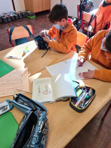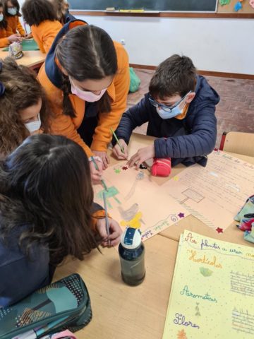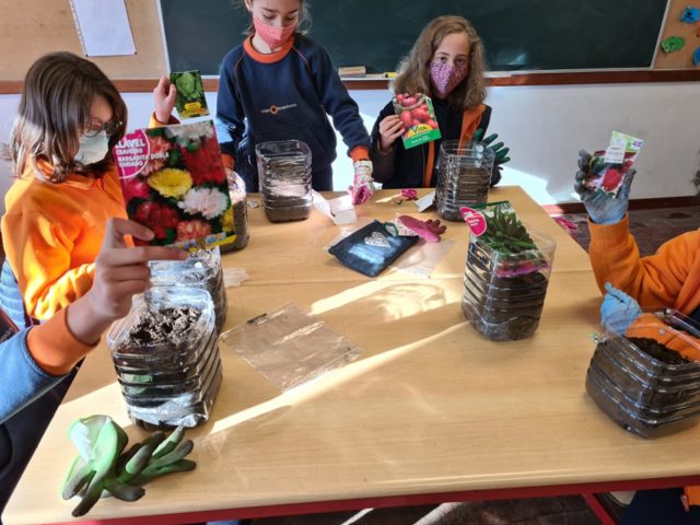 Nas Artes Visuais, iniciaram a construção de uma caixa de compostagem, havendo ainda tempo para, através da visualização de parte do filme “Peter Rabbit”, aprenderem o nome dos vegetais em Inglês. Aproveitaram as aulas de Matemática para medir o espaço da futura horta e dos respetivos canteiros. A partir destas medições foram calculadas as áreas e os perímetros dos canteiros e da horta. No último dia, foi feito um projeto da horta, onde, futuramente, plantarão as flores, as ervas aromáticas e as hortícolas que agora semearam.