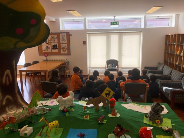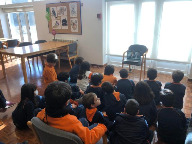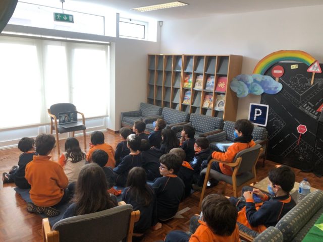 Na manhã de hoje, em pleno aniversário de uma aluna da turma, os alunos do 2° ano A foram presenteados com uma atividade especial na Biblioteca Escolar. Num cantinho próprio de leitura e audição de histórias, a turma teve a oportunidade de ouvir a narração da história “O pinheiro, o eucalipto e a água”, dinamizada pelos pais da aluna aniversariante, que se fizeram acompanhar do livro com ilustrações e um fantoche que muito lhes ensinou.