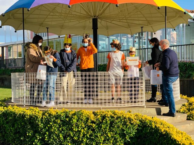 Hoje, dia 14 de fevereiro, procedeu-se à entrega dos prémios e respetivos diplomas aos vencedores do concurso “Aqui o(a) rei (rainha) és tu!”, do 5º ao 9º ano de escolaridade, no âmbito da articulação disciplinar entre as disciplinas de Educação Visual e Espanhol.