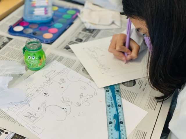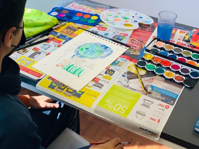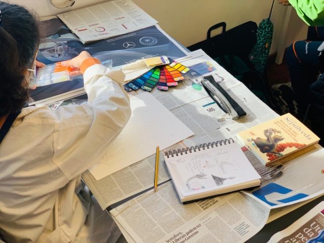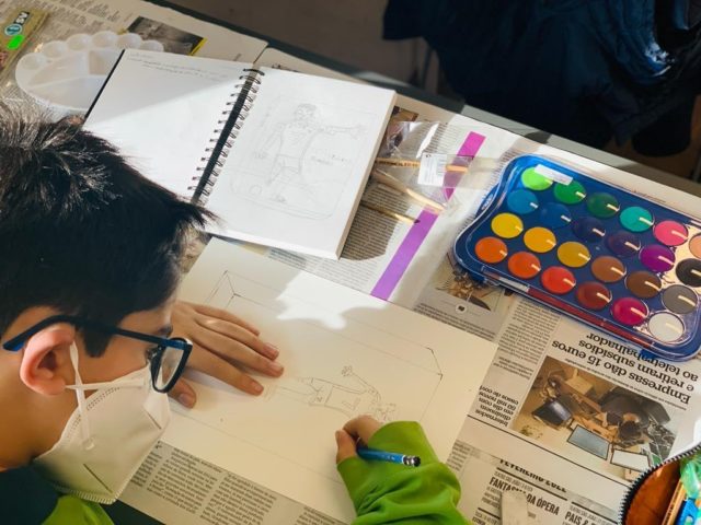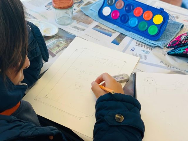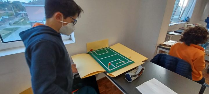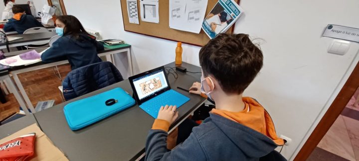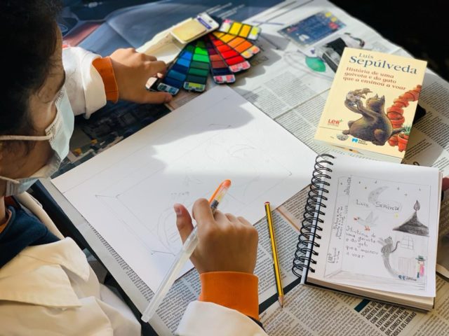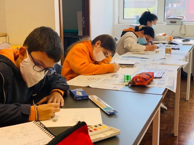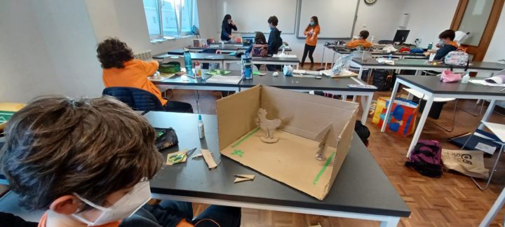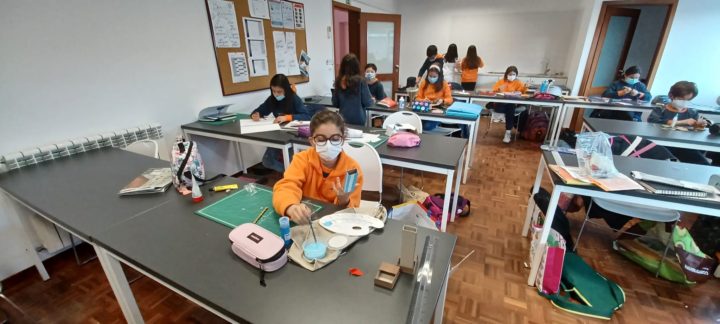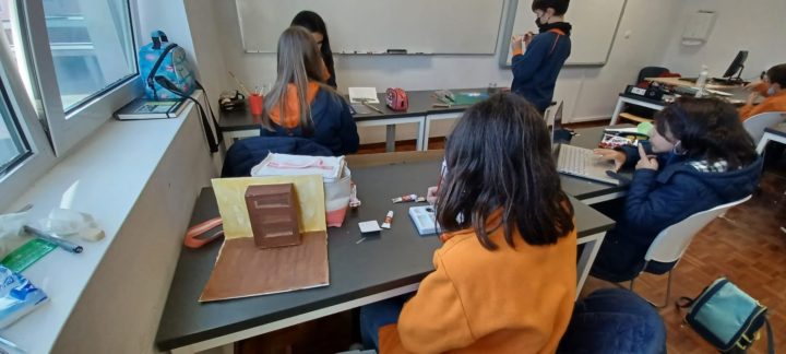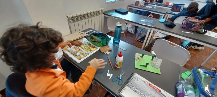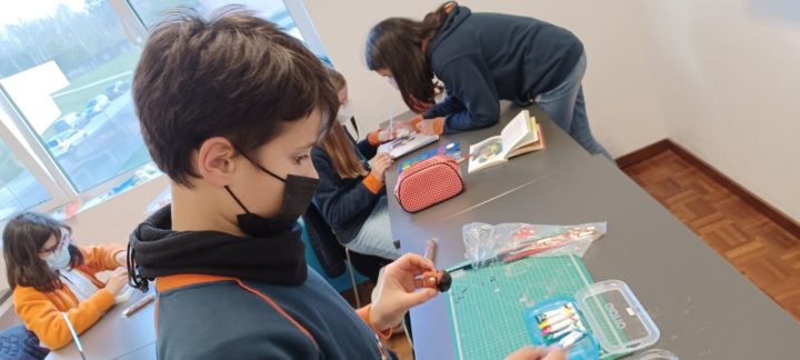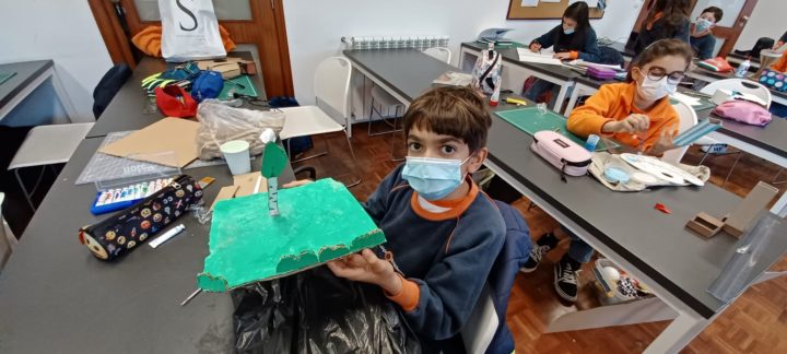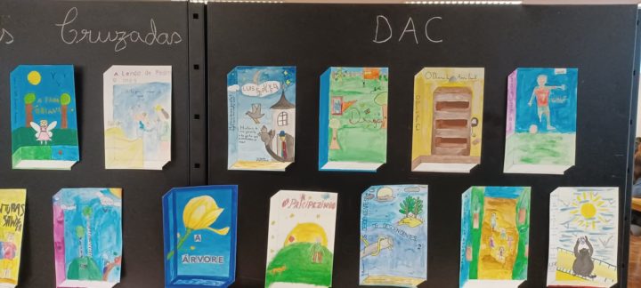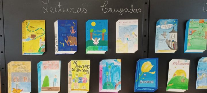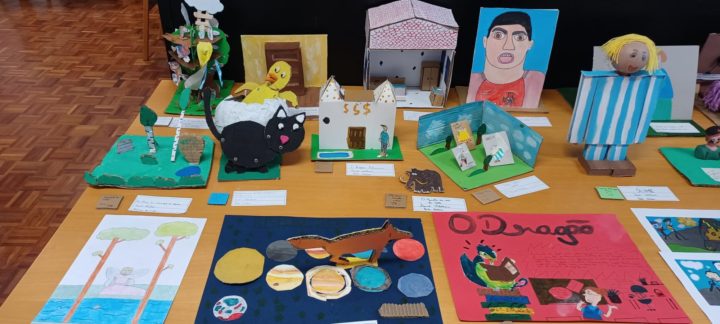 Os alunos do 5º ano B utilizaram os dias 3 e 4 do corrente mês para se dedicarem a um projeto da turma, que começou a ser desenhado no 1º período. No âmbito da disciplina de Português, começaram por cruzar os temas dos livros lidos com as áreas temáticas de várias disciplinas. Após a leitura e respetiva apresentação à turma, cada aluno selecionou um aspeto concreto da obra (personagem, referência histórica, espaço, tema…) e materializou-o através de ilustrações ou pequenas instalações.