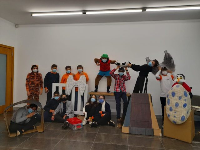 No âmbito do desenvolvimento de um projeto de articulação curricular, a turma do 7ºA decidiu, de uma forma muito ambiciosa, dramatizar a obra “História de uma gaivota e de um gato que a ensinou a voar” de Luís Sepúlveda, abordada no Projeto de Leitura deste período. Passando por todas as fases de criação de uma peça de teatro, desde a elaboração do texto dramático até à construção de adereços e de cenários, os alunos têm trabalhado muito afincadamente para que esteja tudo pronto para o dia da apresentação.