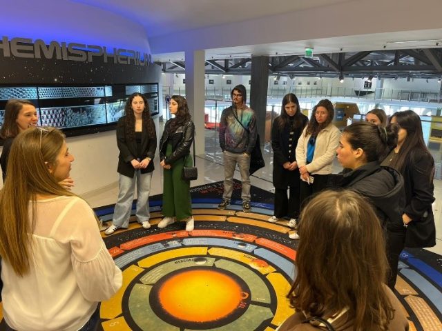 Após o momento da exposição, os alunos puderam assistir a um filme em 360 graus sobre as viagens que inspiraram o cientista a desenvolver a teoria sobre a origem das espécies.