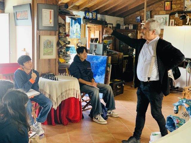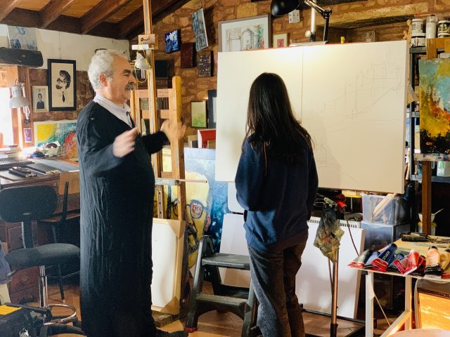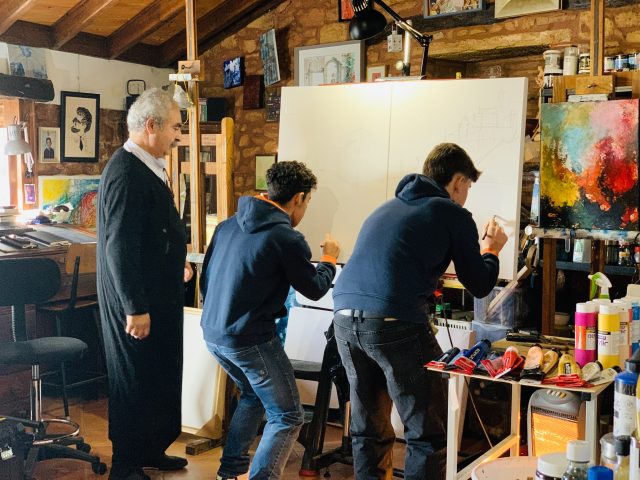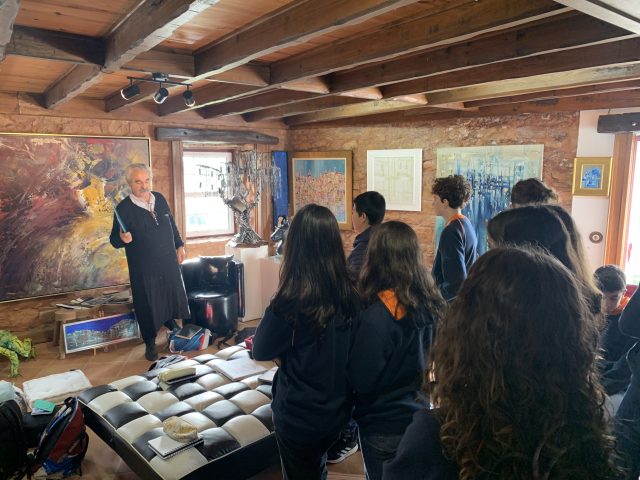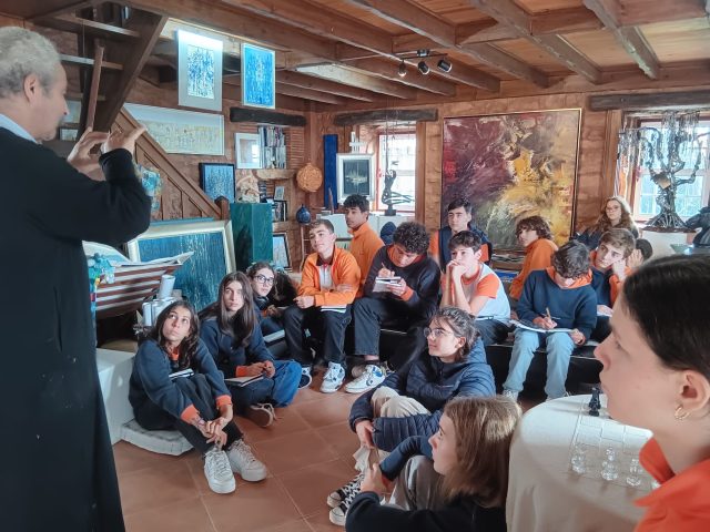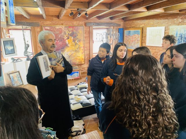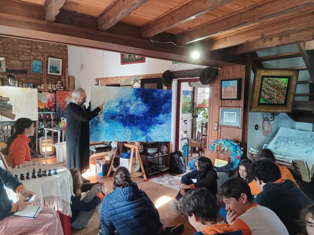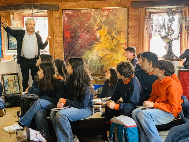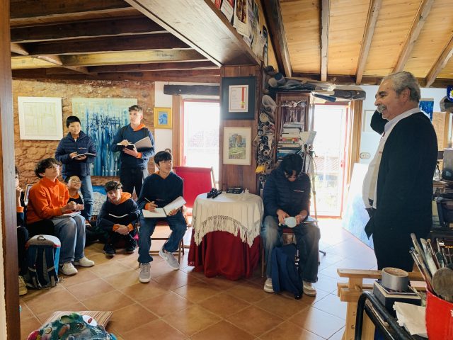 Os alunos tiveram a oportunidade de conhecer a vida e obra do artista, as técnicas que utiliza, os temas que aborda e o seu processo criativo. Foi mais um excelente momento com muitas aprendizagens, onde reinou a partilha e a fruição das obras presentes no atelier.