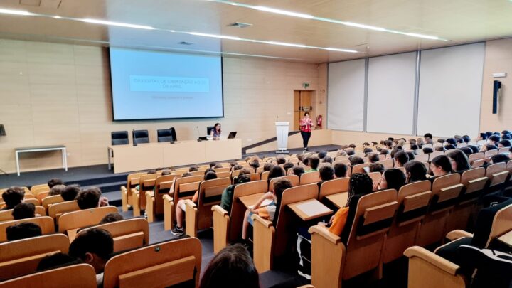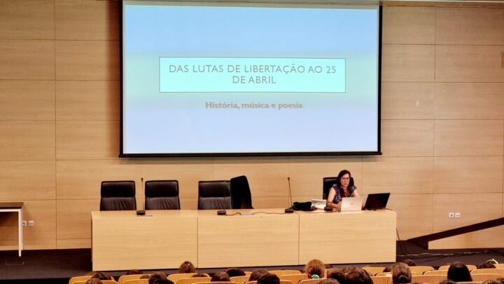 No dia 22 de abril, os alunos dos 2º e 3º ciclos do CBB receberam a visita da Dra. Inês Rodrigues, doutorada em Pós-colonialismos e cidadania global pela Universidade de Coimbra, que veio dinamizar uma sessão de esclarecimento intitulada “Das lutas de libertação ao 25 de Abril: História, música e poesia”.