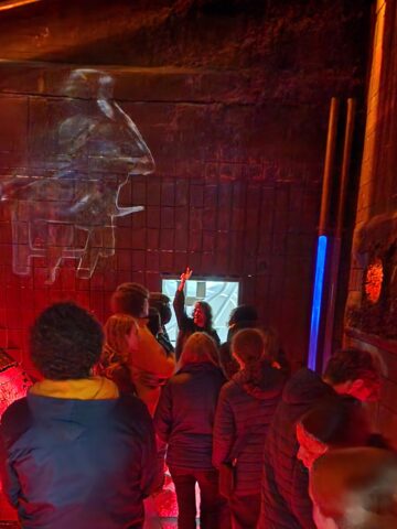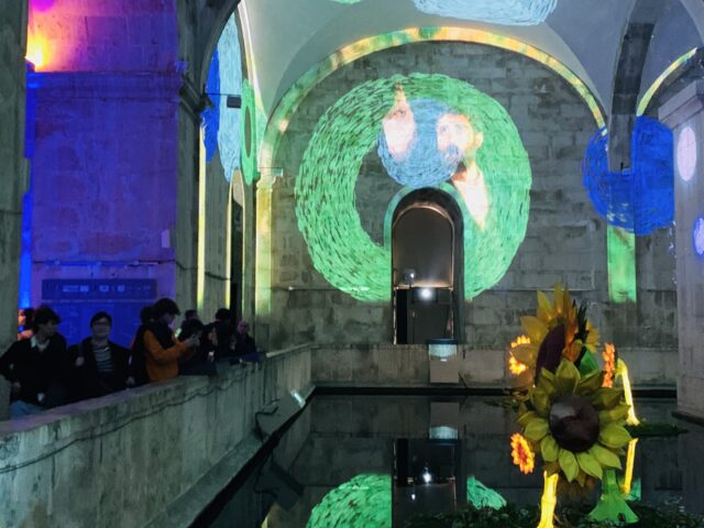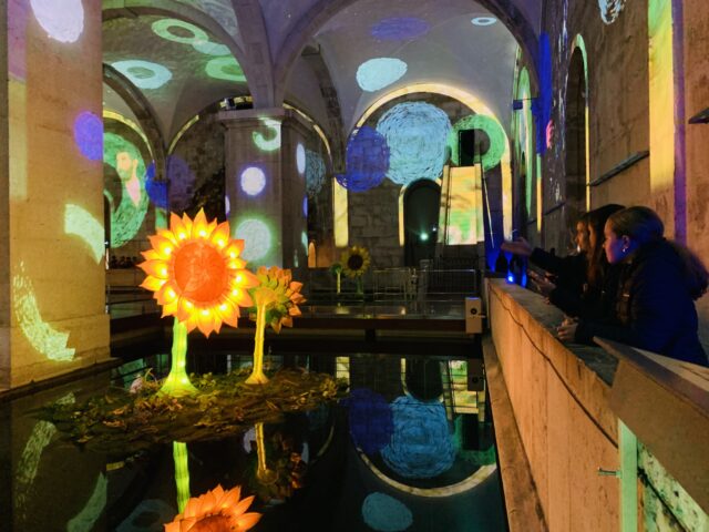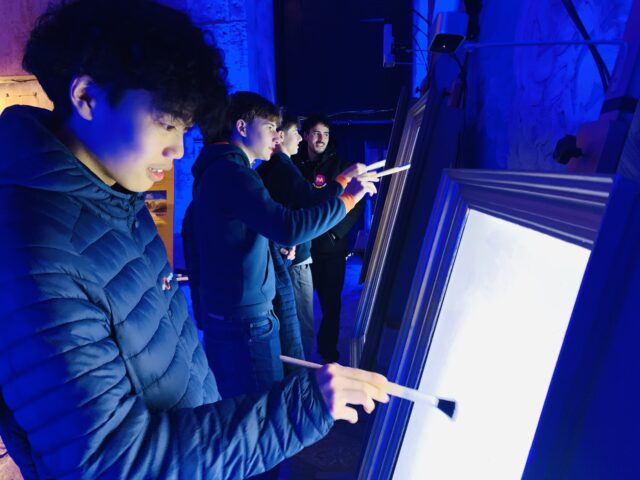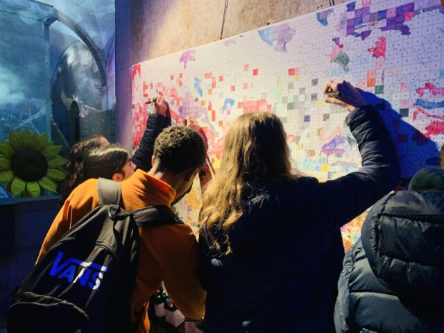 A primeira etapa da visita de estudo foi a exposição imersiva Living Van Gogh, que permitiu aos estudantes conhecerem melhor a vida e a obra do artista Vincent Van Gogh, nascido na vila holandesa de Zundert, em 1853. Por meio de projeções envolventes, os alunos viajaram pelas paisagens e retratos do pintor, descobrindo o impacto das suas pinceladas expressivas e cores singulares. A exposição revelou o lado íntimo e sensível de Van Gogh, evidenciando como suas emoções influenciaram profundamente sua arte.
