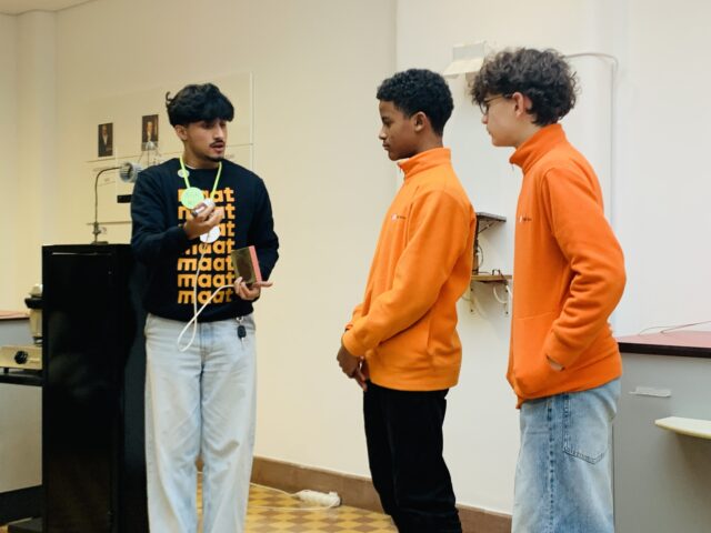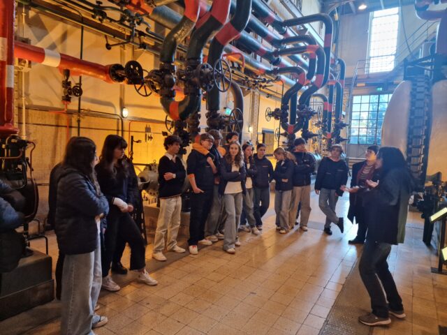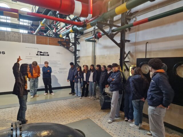 A etapa seguinte foi a visita ao MAAT – Central Tejo, onde os alunos participaram de uma visita guiada à Central Elétrica. Aqui, tiveram a oportunidade de aprender sobre os fenómenos da energia e os desafios ambientais, além de explorar a exposição A História da Energia, que aborda o passado, presente e futuro da produção energética. A experiência foi complementada por uma sessão prática com experiências científicas relacionadas com a energia, despertando ainda mais o interesse dos alunos.