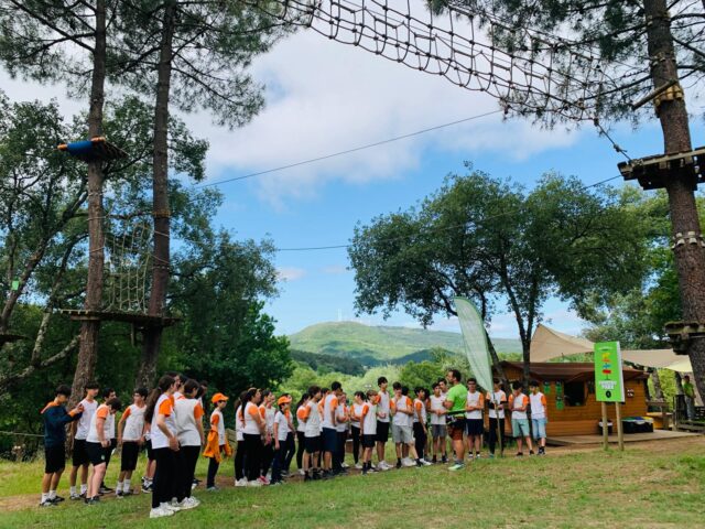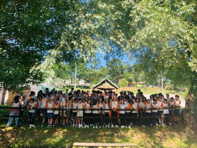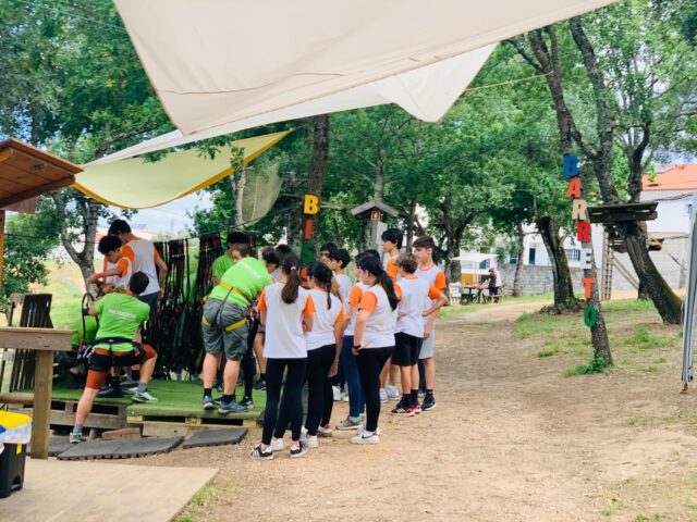 No passado dia 6 de junho, os alunos do 3º Ciclo participaram com energia e entusiasmo nas atividades do Roteiro: Saúde e Bem-Estar. Superaram receios e desafiaram as alturas com coragem, sempre em segurança, em plena harmonia com a Natureza. Alunos e professores percorreram os diferentes circuitos do arborismo, jogaram futebol interturmas, saltaram no insuflável, jogaram às cartas entre outros jogos, cantaram, dançaram, desfrutaram do relvado junto ao ribeiro, conversaram e partilharam muitas risadas – momentos que se transformaram em memórias especiais.