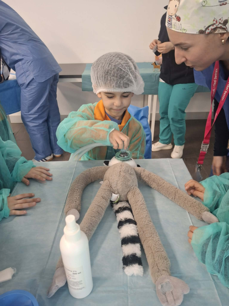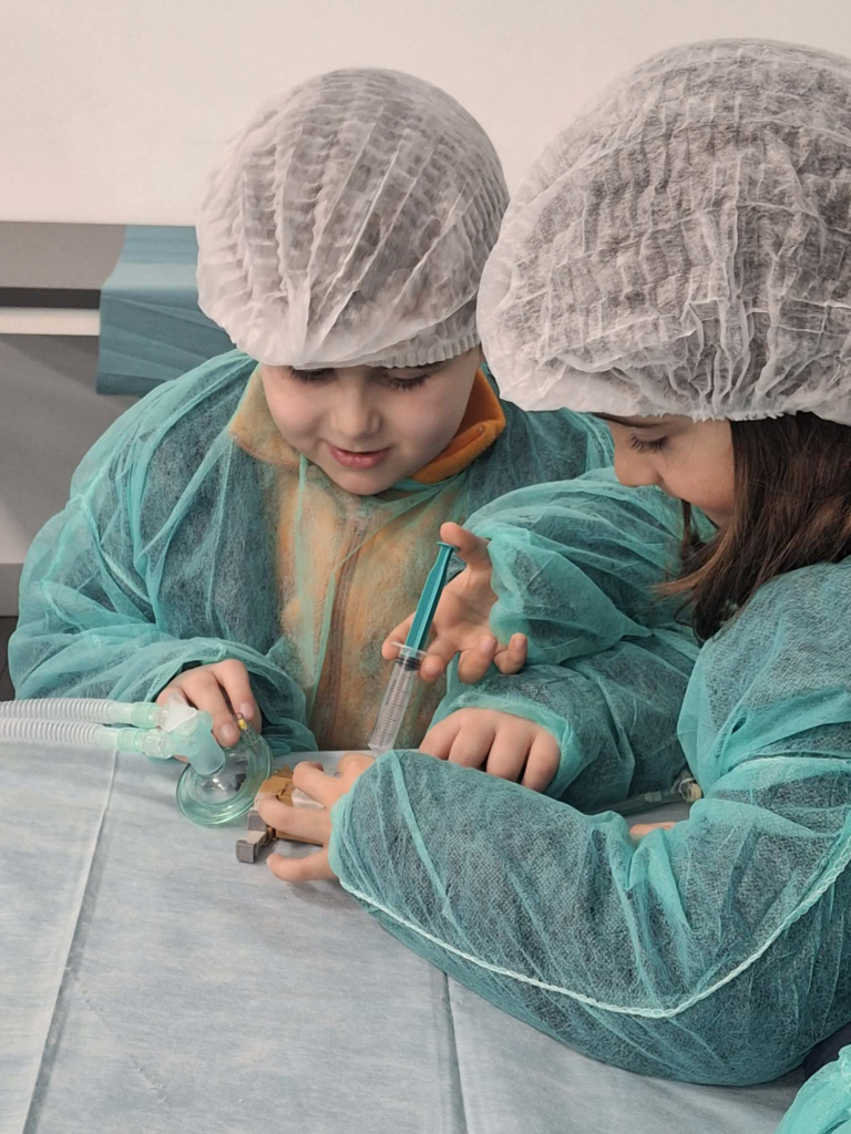 Através de dois cenários — bloco operatório e enfermaria — os alunos tiveram a oportunidade de simular cuidados de saúde aos seus brinquedos preferidos, assumindo o papel de pequenos profissionais de saúde. Entre cirurgias, curativos, raios X e outros procedimentos, a atividade proporcionou momentos de aprendizagem, diversão e muita imaginação.